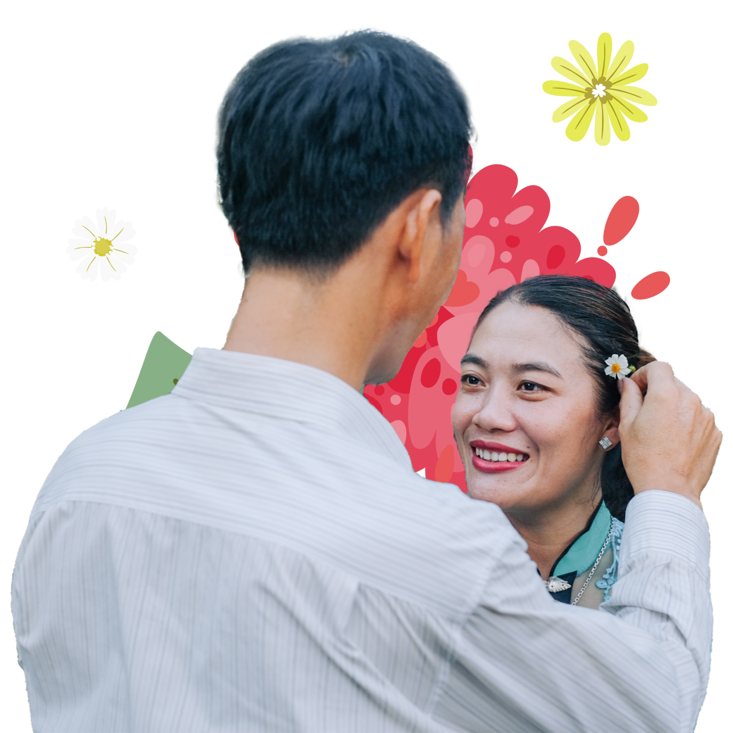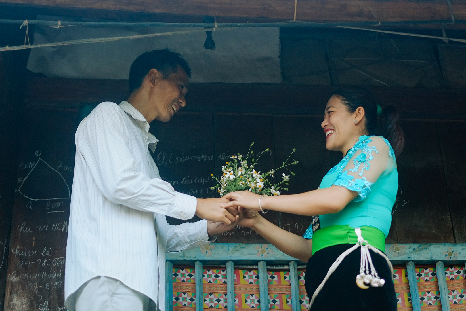 “Lúc anh chị đến với nhau ý, Tết mà, đêm giao thừa, hai đứa muốn đi xem pháo hoa trên phố. Vẫn cái xe đạp cọc cạch, hai đứa đèo nhau đi. Ôi ra ngoài đường, người ta đi xe máy hết, cứ vút qua vút qua. Anh cũng chẳng biết có cái sức mạnh gì mà đi xe đạp thôi cũng vui, cũng cứ đi như người ta.”