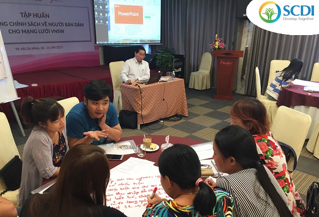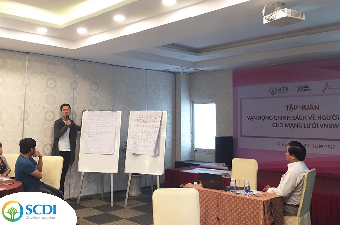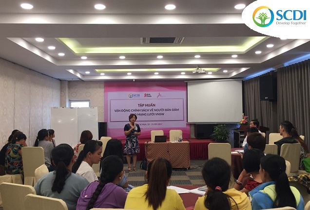 On September 20th, 2017, a training session on "Advocacy for sex workers from VNSW" took place at Sen Viet Hotel, Ho Chi Minh City. The instructor is Dr. Nguyen Trong An - Deputy Director of RTCCD - The Research and Training Center for Community Development - The Evidence-Based Health Policy Development Advocacy Group (EBHPD). From SCDI, Dr. Nguyen Hoai Huong, Deputy Director, Program Officer and local officers from SCDI; and the participation of the Vietnam Network of Sex Workers (VNSW) representatives.