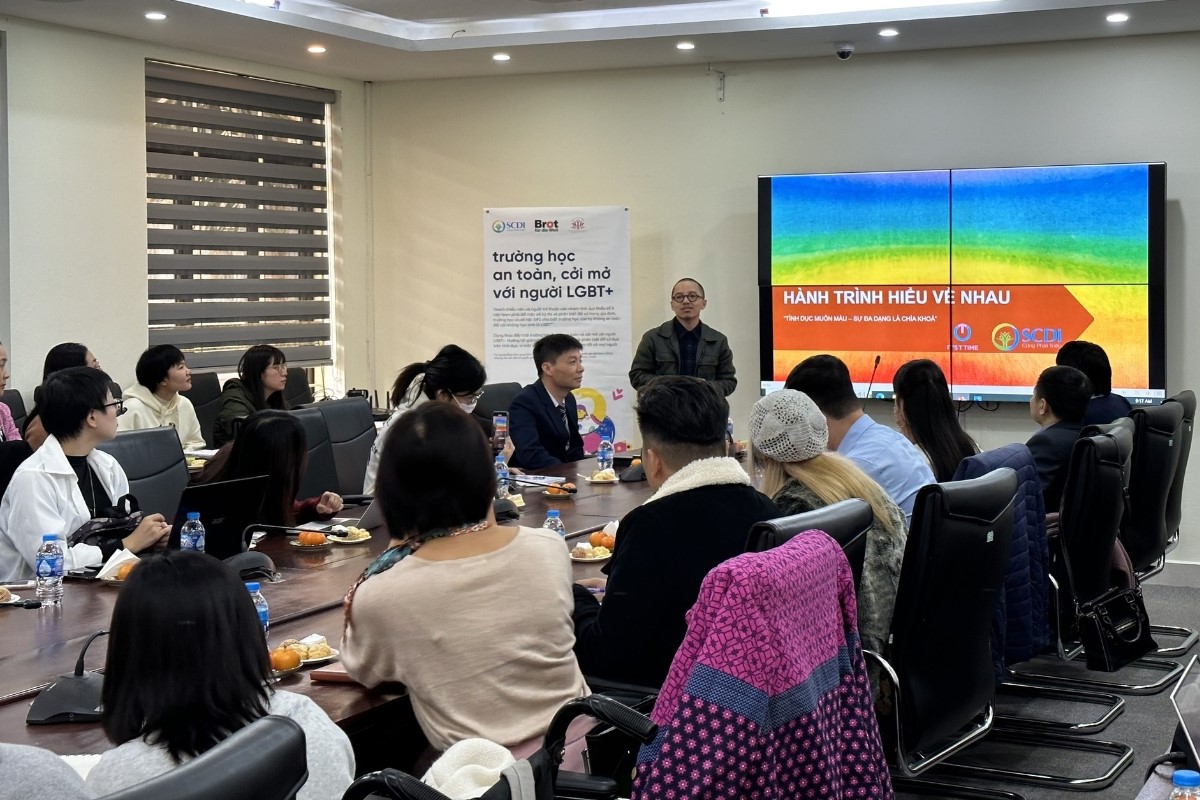 Với mục tiêu hướng tới xây dựng trường học an toàn, cởi mở với người LGBT+, trong tháng 12/2022, SCDI tổ chức buổi tọa đàm với giảng viên khoa Công tác Xã hội - trường Đại học Lao động Xã hội và buổi chia sẻ với giảng viên, sinh viên khoa Tâm lý - trường Đại học Khoa học Xã hội và Nhân văn cùng sự tham gia của sinh viên các trường về đa dạng tính dục (SOGIESC).