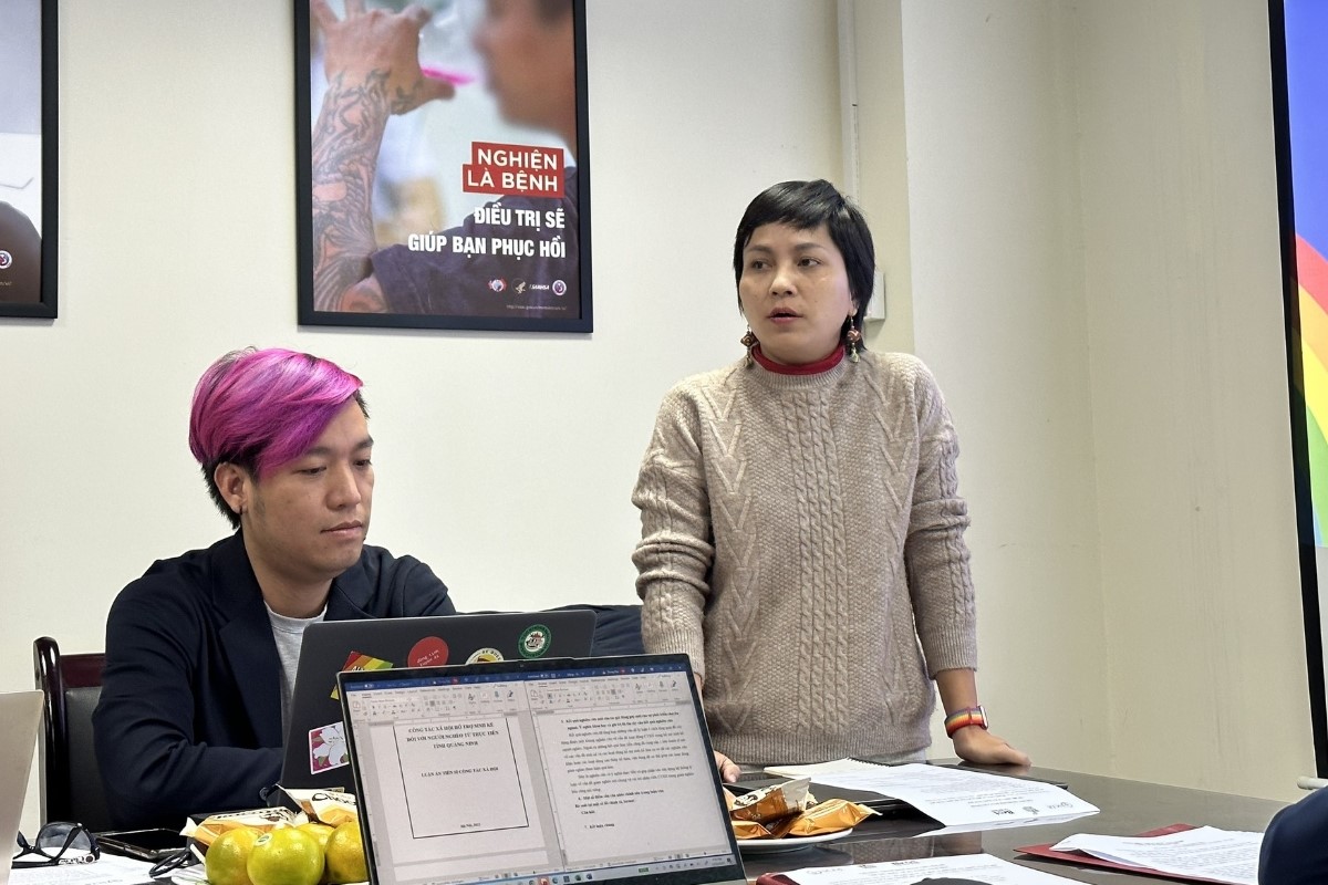 Ảnh: Chị Nguyễn Thị Kim Dung, quản lý Chương trình Hỗ trợ Cộng đồng - SCDI chia sẻ về môi trường học đường an toàn, thân thiện với cộng đồng LGBT