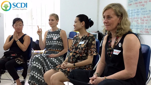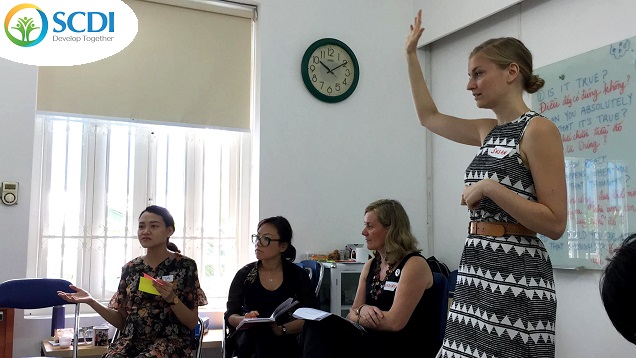 Từ ngày 8 đến 11/10/2017, cán bộ từ Trung tâm Hỗ trợ Sáng kiến Phát triển Cộng đồng (SCDI) và các trưởng nhóm CBO chuyên tư vấn cho cộng đồng đích đã cùng tham gia buổi tập huấn TOT (tập huấn dành cho giảng viên) "Bạn có tin tất cả những gì bạn nghĩ? - Do you believe everything you think? " tập trung vào nội dung "Tự kỳ thị - sự hổ thẹn - Suy nghĩ căng thẳng" dựa trên "The work of Byron Katie - Công việc của Byron Katie" được thực hiện bởi hai chuyên gia quốc tế - Nadine và Susan đến từ Ireland và Canada, thuộc tổ chức quốc tế The Work for Change.