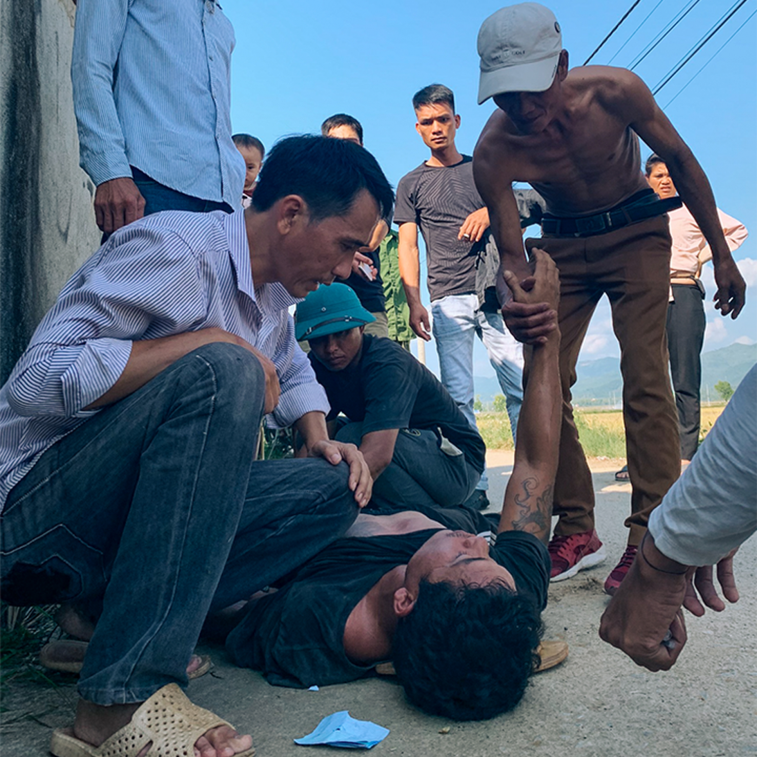 Xa xa một nhóm người nháo nhác, người đàn ông nằm ven đường, bất tỉnh. Các anh chia nhau thực hiện sơ cứu và khẩn trương thao tác tiêm naloxone. “Bệnh nhân ngừng thở. Sơn, ép tim…”