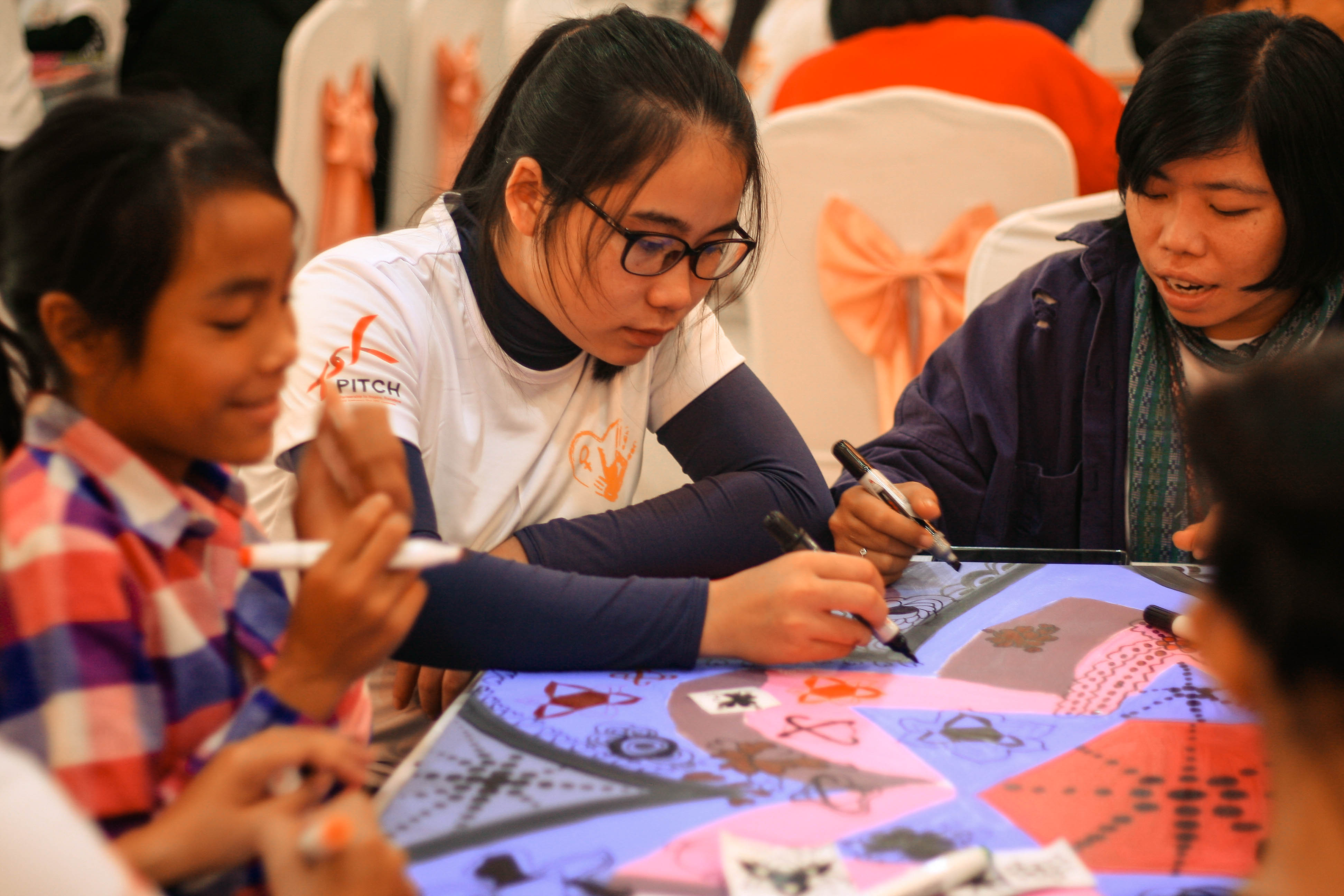 Trong ngày tiếp theo, dưới sự hướng dẫn của chị Đặng Thị Minh Thư, toàn thể tham dự viên đã có cơ hội phát huy sự sáng tạo của mình khi tham gia hoạt động Hội họa kết nối (Circle Painting) - trải nghiệm nghệ thuật tập thể đầy thú vị nhằm truyền tải thông điệp "Lắng nghe phụ nữ và trẻ em gái".